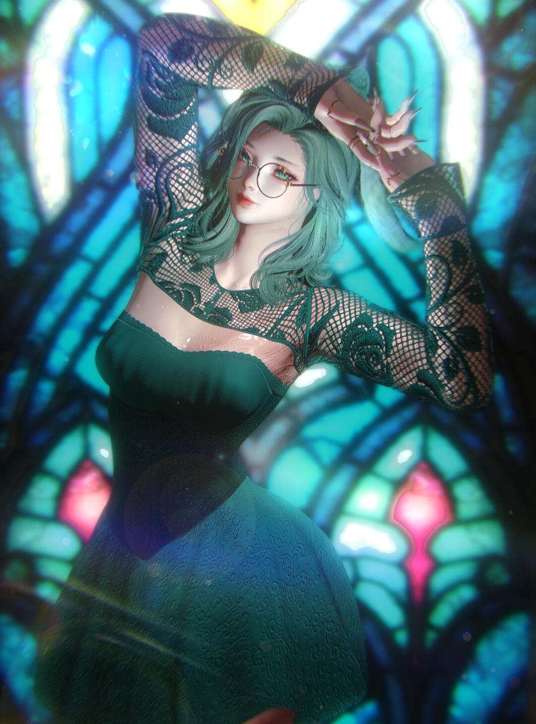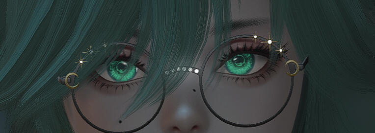 Owing to an overabundance of aether, qes has a small glow to her eyes. the exact cause to her dense aether isn't known to most, but she has been learning how to control it in recent days.she also has four moles on her face.