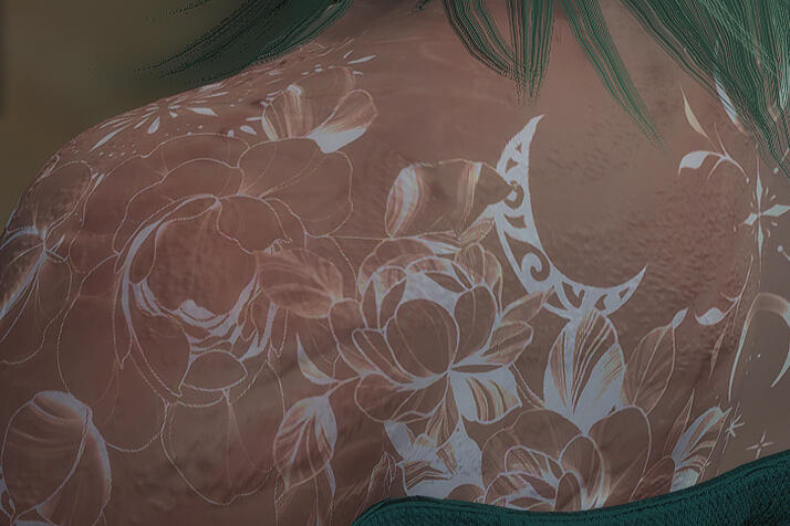 Chemical burn scarring lays on the entire left side of her body. She tries to distract from it by veering conversation in other directions, or by talking about her tattoos instead. What caused those marks, however, is something only those close to her know.