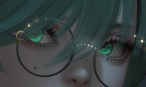 Owing to an overabundance of aether, qes has a small glow to her eyes. the exact cause to her dense aether isn't known to most, but she has been learning how to control it in recent days.she also has four moles on her face.